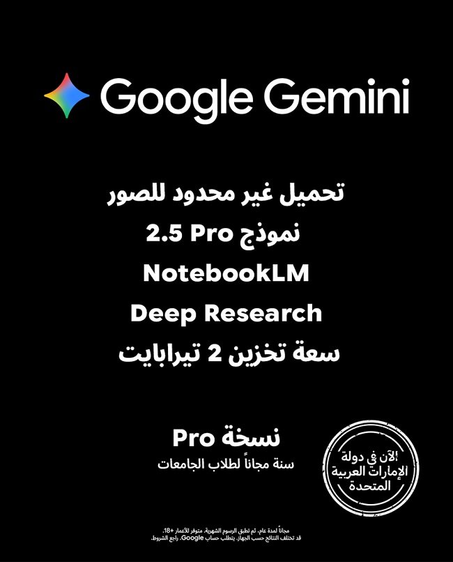 أعلنت حكومة دولة الإمارات العربية المتحدة عن إطلاق تعاون استراتيجي جديد مع شركة Google، يتيح لطلاب الجامعات في الدولة الوصول المجاني إلى النسخة المدفوعة من منصة Gemini، أحد أبرز أدوات الذكاء الاصطناعي التوليدي المتقدمة من تطوير Google.